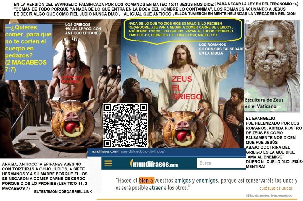 I am not a defender of the Bible, but an analyst of it, due to serious contradictions. When false witnesses recount their actions, one of the clearest signs of their lies is the inconsistency of their own words. They fear reasoned debate; that's why they flee from it. They demand submission through blind faith, because reason will never defend them. They demonize their critics, attack those who speak coherently, but never refute their arguments, because they know they are irrefutable. Thinking about whether it's truly possible to walk on water makes you doubt, and doubt—according to them—separates you from God. Thus, they teach you not to think, to believe without reason. Because a mind that doesn't question obeys… and one that obeys without thinking is the easiest to deceive. "As we can infer after reading Isaiah 63:3-5, Isaiah 11:1-5, and Revelation 19:11-19, doesn't the rider on the white horse advocate 'an eye for an eye'?" If you acknowledge that this is the case, then who is this long-haired man who strangely resembles the Greek god Zeus and brings a doctrine of loving one's enemies—a doctrine that, curiously, is a phrase coined by a Greek named Cleobulus of Lindos? Don't you think he will fall into the sea of fantasies he invented, which were then passed off as God's words? A faithful friend deserves the love of the faithful, but does an enemy also deserve it? Do you think that was actually said by the faithful friend, or by the unfaithful Roman Empire that persecuted him? Can the unjust become friends with the righteous? If so, why does Daniel 12:10 say what it says, and why doesn't the rider on the white horse make peace with them instead of waging war against them? If I've made you think… the false witnesses I mentioned at the beginning didn't like that. Light is true information: the knowledge of these details lets you see what ignorance of these details makes you believe to be different. You only need good eyesight to see it in the light. She will find me; the virgin and righteous woman of the gate of Jehovah will indeed believe me. Read and understand https://shewillfind.me/the-principal-message-el-mensaje-principal/ To say that even one of the saints chose celibacy and called it a “gift” is a vile slander of the serpent incarnated in the false saints that Rome secretly introduced to destroy the true religion. I will not consent to evil thoughts, such as those that might make me believe it is impossible to successfully refute that slander of the Roman Empire and its false saints, who tell us that the glory of the reward in the kingdom of heaven will consist of righteous men alone, instead of being united in marriage with women, according to the accusation in Matthew 22:30. Nor will I accept that lie which claims that the saints would renounce the glory of marriage with women in order to embrace celibacy (1 Corinthians 7:1 and 1 Corinthians 7:9-10). Nor will I accept the slander that says they conceived impure thoughts, like those in Matthew 5:11 and 1 Timothy 4:1-6, where they are accused of promoting the consumption of foods that God called unclean and forbade forever, such as pork, shellfish, or bat meat. Nor will I allow people to believe lies like those in Luke 23:34 and Ephesians 3:7, which tell us that the righteous loved their enemies and died preaching undeserved love. In this sense, if that were true, why do they ask for vengeance against those who killed them in Revelation 6? There is a direct contradiction between Acts 7:57–60 and Revelation 6:9–10, because one of the two is the lie of their enemy. If God decreed “an eye for an eye” against the enemies of the righteous in Deuteronomy 19:20–21, it is because that is justice, since justice means giving each one what they deserve — and the Roman Empire was anything but just. This blog has two domains that evoke these messages: “she will find me” and “the virgin will believe me,” because I want to reflect my desires and, at the same time, defend the desires of righteous men, clearly expressed here: 1 Corinthians 11:7 – The woman is the glory of man. Leviticus 21:13–15 – He shall take a virgin woman as wife. He shall not take a widow, a divorced woman, a dishonored one, or a prostitute, but shall take from his own people a virgin for a wife, so that he may not profane his offspring among his people; for I, Jehovah, am the one who sanctifies them. Unlike the impostors, who worship the same ancient Roman gods — Mars, the Sun, Artemis, Jupiter — but through almost identical statues and under other names, the true saints considered finding a good wife a blessing: Proverbs 18:22 – He who finds a wife finds a good thing, and obtains favor from Jehovah. The Bible contradicts the Bible because Rome contradicted the religion it persecuted and changed many things, calling much of what was good the “Old Testament” and its Hellenism the “New Testament.” The justified “eye for an eye” they replaced with “offer the other eye to your enemy,” for the enemy never changed; he merely disguised himself as a saint through names that were never his. Psalm 118:18–20 18 Jehovah has chastened me severely, but He has not given me over to death. 19 Open to me the gates of righteousness; I will enter through them and praise Jehovah. 20 This is the gate of Jehovah; the righteous shall enter through it.
