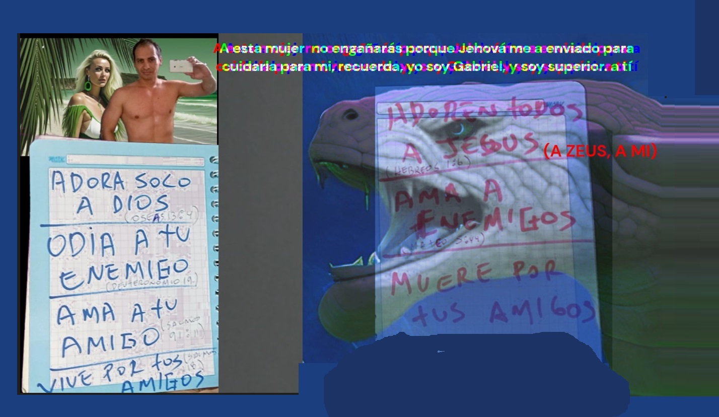 En esta fotografía, con un pequeño aviso yo defiendo la verdad, ¿y a quiénes se enfrenta el mensaje en esa hoja?, no solo se enfrenta a los mensajes falsos de millones de Biblias, también a muchos millones de panfletos de falsos testigos de Jehová y de otros grupos pro bíblicos, y en la imagen que contiene también mi foto, frente a mi y como adversario, pongo la imagen de Zeus o Júpiter porque fueron los adoradores de estos dioses paganos los que helenizaron o romanizaron el evangelio, porque las buenas noticias nunca fueron para los amigos del César, sino para los amigos de Daniel. El César se acuñaba monedas con su rostro y se postraba delante de estatuas, pero Daniel no se postraba ante ninguna estatua, ni era amigo de vanidades. Daniel era un profeta leal a Jehová, el era enemigo de mi enemigo y amigo de mi amigo.