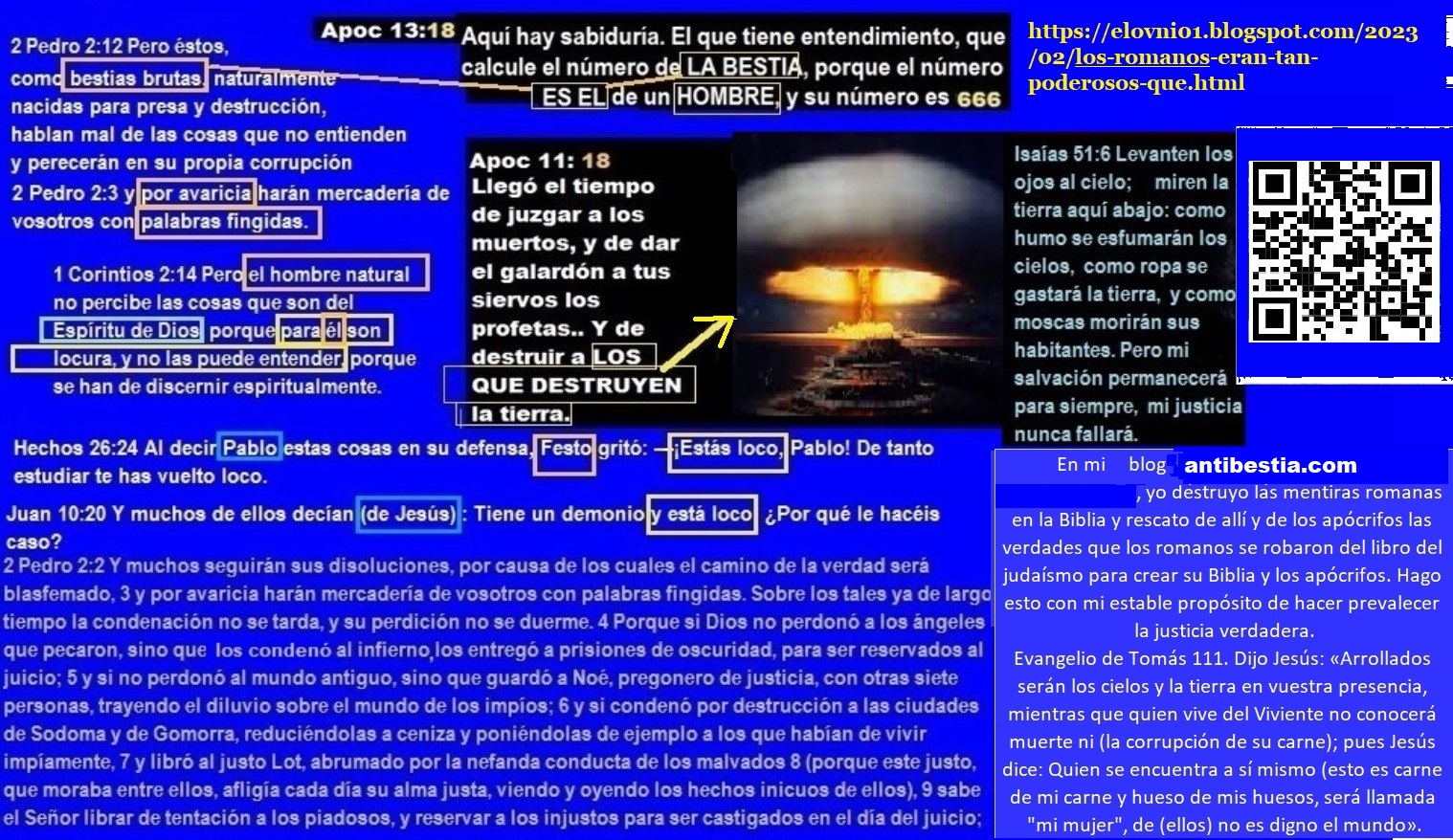 No soy cristiano; soy un henoteísta. Creo en un Dios supremo que está por encima de todo, y creo que existen varios dioses creados — algunos fieles, otros engañadores. Yo solo le rezo al Dios supremo. Pero como fui adoctrinado desde la infancia en el cristianismo romano, durante años creí en sus enseñanzas. Apliqué sus ideas incluso cuando el sentido común me decía lo contrario. Por ejemplo —por decirlo de alguna manera— ofrecí la otra mejilla a una mujer que me había golpeado en una. Una mujer que al inicio se comportó como amiga, pero que, sin justificación alguna, comenzó a tratarme como si yo fuera su enemigo, con actitudes extrañas y contradictorias. Influenciado por la Biblia, llegué a pensar que ella había caído bajo algún embrujo, y que lo que necesitaba era oración para volver a ser la amiga que había mostrado ser (o fingido ser). Pero al final, todo empeoró. Apenas tuve la oportunidad de investigar más a fondo, descubrí la mentira y me sentí estafado en mi fe. Comprendí que muchas de esas enseñanzas no provenían del verdadero mensaje de justicia, sino del helenismo romano infiltrado en las Escrituras. Y confirmé que había sido engañado. Por eso hoy denuncio a Roma y su fraude. No lucho contra Dios, sino contra las calumnias que han contaminado su mensaje. Proverbios 29:27 declara que el justo aborrece al injusto. Sin embargo, 1 Pedro 3:18 asegura que el justo murió por los injustos. ¿Quién puede creer que alguien muere por aquellos a quienes aborrece? Creerlo es tener fe ciega; es aceptar la incoherencia. Y cuando se predica la fe a ciegas, ¿no será porque el lobo quiere que su presa no vea el engaño?