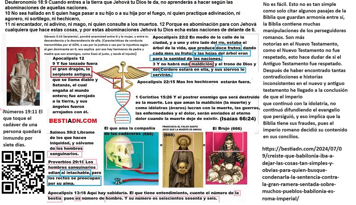 “El imperio Romano, Bahira, Mahoma, Jesús y el judaísmo perseguido. El nacimiento y la muerte de cuarta bestia. La alianza greco-romana por los mismos dioses. El Imperio seléucida. Cuidado con creer en el evangelio del anticristo (Buenas noticias para los injustos, aunque falsas) Si quieres salvarte del engaño del adversario de la justicia, considera que: Para rechazar el falso evangelio de Roma, acepte que si Jesús fue justo entonces no amó a sus enemigos, y si no fue hipócrita entonces no predicó el amor a los enemigos porque no predicaba lo que no practicaba: Proverbios 29:27 Los justos odian a los injustos, y los injustos odian a los justos. Esto es parte del evangelio adulterado por los romanos para la Biblia: 1 Pedro 3:18 Porque Cristo murió una vez por los pecados, el justo por los injustos, para llevarnos a Dios. Ahora mire esto que desmiente esa calumnia: Salmo 118:20 Esta es la puerta de Jehová; los justos entrarán por ella. 21 Te daré gracias porque me has escuchado y has sido mi salvación. 22 La piedra que rechazaron los constructores se ha convertido en la piedra angular. Jesús maldice a sus enemigos en la parábola que predice su muerte y regreso: Lucas 20:14 Pero cuando los viñadores vieron esto, discutieron entre sí, diciendo: Éste es el heredero; Venid, matémoslo, para que la herencia sea nuestra. 15 Entonces lo echaron de la viña y lo mataron. ¿Qué les hará entonces el dueño de la viña? 16 Él vendrá y destruirá a estos viñadores y dará la viña a otros. Cuando lo oyeron, dijeron: ¡De ninguna manera! 17 Pero Jesús, mirándolos, dijo: ¿Qué, pues, es esto que está escrito: La piedra que desecharon los constructores se ha convertido en la piedra angular? Él habló de esta piedra, de la piedra de la pesadilla del rey de Babilonia: Daniel 2:31 Tú, oh rey, veías, y he aquí una gran imagen. Esta imagen, que era muy grande, y cuya gloria era muy sublime, estaba en pie delante de ti, y su aspecto era terrible. 32 La cabeza de esta imagen era de oro fino; su pecho y sus brazos, de plata; su vientre y sus muslos, de bronce; 33 sus piernas, de hierro; sus pies, en parte de hierro y en parte de barro cocido. 34 Estabas mirando, hasta que una piedra fue cortada, no con mano, e hirió a la imagen en sus pies de hierro y de barro cocido, y los desmenuzó. 35 Entonces fueron desmenuzados también el hierro, el barro cocido, el bronce, la plata y el oro, y fueron como tamo de las eras del verano, y se los llevó el viento sin que de ellos quedara rastro alguno. Mas la piedra que hirió a la imagen fue hecha un gran monte que llenó toda la tierra. La cuarta bestia es la alianza de los líderes de todas las falsas religiones amigables con el fraude romano denunciado. El Cristianismo y el Islam dominan el mundo, la mayoría de los gobiernos o juran por el Corán o por la Biblia, por ese simple motivo, aunque los gobiernos lo nieguen, son gobiernos religiosos que se someten a las autoridades religiosas que están detrás de esos libros por los cuales juraron. Aquí les voy a mostrar la influencia romana en los dogmas de estas religiones y como distan mucho de los dogmas de la religión que perseguía Roma, Además, lo que les voy a mostrar no es parte de la religión que hoy se conoce como Judaísmo. Y si a esto le sumamos la fraternidad de los líderes del Judaísmo, Cristianismo e Islam, hay suficientes elementos para señalar a Roma como la creadora de los dogmas de estas religiones, y que la última religión mencionada no es la misma que el Judaísmo que perseguía Roma. Sí, estoy afirmando que Roma creó el cristianismo y que persiguió un Judaísmo diferente al actual, los líderes leales del Judaísmo legítimo jamás darían abrazos fraternales a difusores de doctrinas idólatras. Es evidente que no soy cristiano, ¿entonces porque cito pasajes de la Biblia para dar sustento a lo que digo?, pues porque no todo en la Biblia pertenece exclusivamente al cristianismo, parte de su contenido es el contenido de la religión del camino de la justicia que fue perseguido por el imperio romano por ser contrario al ideal romano de hacer que «Todos los caminos conduzcan a Roma (Es decir, que esos caminos favorezcan los intereses imperiales), por eso tomo algunos pasajes de la Biblia para sustentar mis afirmaciones. Daniel 2:40 Y el cuarto reino será fuerte como hierro; y como el hierro desmenuza y rompe todas las cosas, desmenuzará y quebrantará todo. 41 Y lo que viste de los pies y los dedos, en parte de barro cocido de alfarero y en parte de hierro, será un reino dividido; mas habrá en él algo de la fuerza del hierro, así como viste hierro mezclado con barro cocido. 42 Y por ser los dedos de los pies en parte de hierro y en parte de barro cocido, el reino será en parte fuerte, y en parte frágil. 43 Así como viste el hierro mezclado con barro, se mezclarán por medio de alianzas humanas; pero no se unirán el uno con el otro, como el hierro no se mezcla con el barro. 44 Y en los días de estos reyes el Dios del cielo levantará un reino que no será jamás destruido, ni será el reino dejado a otro pueblo; desmenuzará y consumirá a todos estos reinos, pero él permanecerá para siempre. El cuarto reino es el reino de las falsas religiones. Por eso a los Papas en el Vaticano le dan honores los dignatarios de países como Estados Unidos. El país líder en el mundo no es EEUU, no es la bandera de los Estados Unidos la que ondea en las plazas de armas de las capitales de varios países de Latino América, es la bandera del Vaticano la que ondea. Los Papas se reúnen con los líderes de otras religiones dominantes, cosa imposible de imaginar entre profetas y falsos profetas. Pero entre falsos profetas estas alianzas son posibles. La piedra angular es la justicia. Los romanos no sólo despreciaban el hecho de que fuera un hombre justo, sino también el hecho de que él merecía casarse con una mujer justa: 1 Corintios 11:7 La mujer es la gloria d