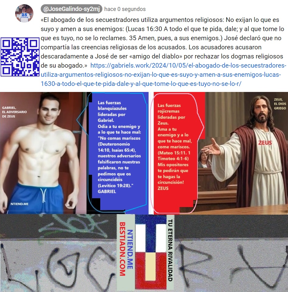 1 Не думайте, что раз я отрицаю учение о «любви к врагам» и многие другие учения Нового Завета Библии, то это значит, что я защищаю все тексты Ветхого Завета Библии https://afavordelajusticiapropiadelosjustos.blogspot.com/2024/01/blog-post_15.html 2 Juzgar al mundo con justicia no implica amar a todos en el mundo sino solo a los justos, y eso hace Dios por medio de los santos. https://myvideosvsothers.blogspot.com/2023/05/juzgar-al-mundo-con-justicia-no-implica.html 3 Fue curioso ver al Diablo sentirse inteligente al ser aplaudido por sus inferiores. https://afavordelajusticiapropiadelosjustos.blogspot.com/2023/04/fue-curioso-ver-al-diablo-sentirse.html 4 El amor a los amigos y a los enemigos es un disparate, es una locura: Siempre existe alguién a quién vale la pena ayudar, en perjuicio de alguien malvado que quiere dañarlo, es absurdo pretender estar a favor de todos. https://ufo-100-10-1.blogspot.com/2023/10/el-amor-los-amigos-y-los-enemigos-es-un.html 5 La caída de la maceta: Más alto subió Babilonia más se creyó invencible, pero luego fue soltada como una maceta por el mismo que con odio la levantó para ese propósito: para que en su caída se haga añicos. https://haciendojoda.blogspot.com/2023/07/mas-alto-subio-babilonia-mas-se-creyo.html 6 Así está sucediendo alrededor de la delincuencia, alrededor de esos parásitos que no trabajan sino que extorsionan, para otros grupos parásitarios… https://enverdadenjusticia.blogspot.com/2023/05/asi-esta-sucediendo-alrededor-de-la.html 7 A propósito de esa gente que usa a Dios como pretexto para lucrar engañando a la gente y también para oponerse a la pena de muerte: el 31 de Agosto de 2022… https://tiempoportresymedio.blogspot.com/2023/02/a-proposito-de-esa-gente-que-usa-dios.html 8 La muerte me desea pero no para mi bien, yo la rechazo, es fea y malvada. https://perlepersonechenonsonozombie.blogspot.com/2023/07/la-muerte-me-desea-pero-no-para-mi-bien.html 9 Yo no escuché ninguna voz en el cielo, pero por medio de los acontecimientos Jehová me ha dicho: “Gabriel, tú eres mi hijo, yo te he engendrado hoy” https://haciendojoda.blogspot.com/2023/07/yo-no-escuche-ninguna-voz-en-el-cielo.html 10 Y no contaminaréis la tierra donde estuviereis; porque esta sangre amancillará la tierra, y la tierra no será expiada de la sangre que fue derramada en ella, sino por la sangre del que la derramó. https://midioslogico.blogspot.com/2023/08/y-no-contaminareis-la-tierra-donde.html 11 Hola Pin Head, ¿Las agujas en tu cerebro te hicieron olvidar tus crímenes?, yo te los recuerdo y te condenaré por tus crímenes. Pin Head, tú no puedes invocar el infierno, solo puedes hacer cosas para merecerlo. Pin Head, has hecho cosas para merecer el infierno, por eso tú allá irás. https://elovni01.blogspot.com/2023/02/pin-head-tu-no-puedes-invocar-el.html 12 Juego de ajedrez: El sacrificio de algunas de mi fichas blancas fue necesario para asegurar la victoria https://ufo-100-10-1.blogspot.com/2023/04/juego-de-ajedrez-el-sacrificio-de.html 13 El emperador Nerón era “moderno” o “versatil” https://el-anti-caballo-de-troya.blogspot.com/2023/04/el-emperador-neron-era-moderno-o.html 14 Zeus añade palabras arrogantes: «Mi palabra en Mateo 15:11, Apocalipsis 1:8 y Hebreos 1:6 pesan más que las palabras de Yahvé.» https://entroenella.blogspot.com/2023/10/zeus-anade-palabras-arrogantes-mi.html 15 Quiero enterarme de los mensajes de Dios, “¿De cual dios?, si es el dios de los romanos pregúntale al Papa, pero si es del Dios que lo creó, lee esta publicación.” https://videos-serie-fr.blogspot.com/2023/03/quiero-enterarme-de-los-mensajes-de.html 16 The allied UFOs are the ones media that preach the true gospel, the hostile UFOs are the ones media that preach lies about God https://entroenella.blogspot.com/2023/01/the-allied-ufos-are-ones-media-that.html 17 Vayan a cargar su cruz, prediquen con el ejemplo hijos del Diablo, demonios con sotana, aunque vayan y lo hagán, yo no seguiré sus pasos, me quedaré observando su final como los incrédulos de sus cuentos. https://cielo-vs-tierra2.blogspot.com/2023/12/spidernet.html 18 ¿A cual dios voz estás predicando che Pancho? https://midioslogico.blogspot.com/2023/02/a-cual-dios-voz-estas-predicando-che.html 19 Los imbéciles son más fáciles de engañar por eso a menor inteligencia de un pueblo, mayor es el lucro allí de los falsos profetas. https://enverdadenjusticia.blogspot.com/2023/09/los-imbeciles-son-mas-faciles-de.html 20 Away from the wicked woman, I will go with the righteous woman, the righteous woman will find me. https://shewillfindme.blogspot.com/2023/12/away-from-wicked-woman-i-will-go-with.html 21