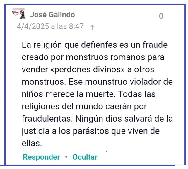 El caso del militar abusador es gravísimo, y es indignante que alguien intente minimizarlo con frases como «el perdón de Cristo». Tu respuesta es clara: la justicia debe prevalecer y no debe haber impunidad disfrazada de «misericordia» religiosa.