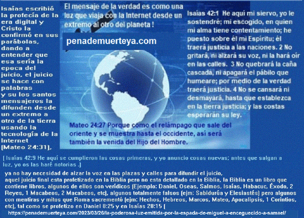 Y ellos dicen también que la verdad es su dios de cabello largo, ese dios Júpiter, el Zeus griego que proclaman con sus imágenes, lo hicieron a través de un evangelio falso que dice de él: «Yo soy la verdad, yo soy la puerta, adórenme a mi todos los dioses (Hebreos 1:6, Juan 14:16)». Era de suponer que esos asesinos odiaban la verdad y por eso engañando falsificaron sus mensajes, y siguiendo engañado dijeron: «Ya no perseguimos esa religión, ahora la difundimos.». Mi «OVNI» NTIEND.ME, emite luz. Esa luz destruye las calumnias del dragón o Satanás, cuyo nombre significa «el calumniador».