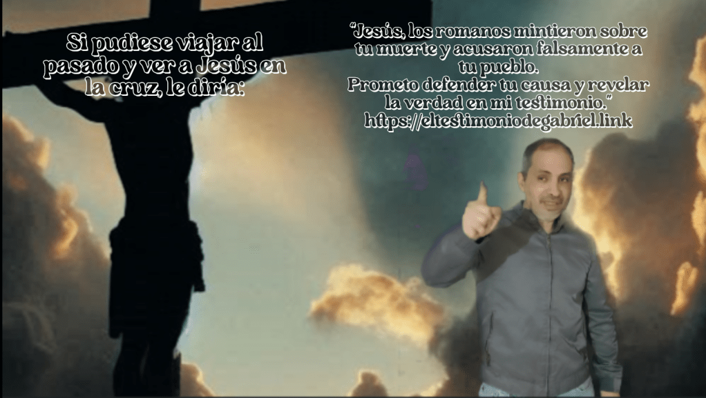 Si pudiese viajar al pasado y ver a Jesús en la cruz, yo le diría algo así: Han pasado dos días para Dios desde tu sacrificio, y en el tercer día Él comienza a levantarnos. Vengo desde ese tercer día, desde el tiempo en que tu verdad empieza a resplandecer. (Inspirado en Oseas 6:2, donde “un día es como mil años para Dios” – 2 Pedro 3:8) Años de 360 días: “Jesús, vengo de un tiempo lejano… han pasado casi 2.000 años desde que naciste entre nosotros. Nací cerca del año 2.000 desde tu venida, y ahora estoy viviendo en el año 2.050.” “Lo que quería decirte es que han mentido de forma espantosa acerca de tí, tu mensaje ha sido falsificado y han sacramentado la impunidad, el amor inmerecido, el perdón injustificado y la idolatría en torno a tu persona y a las imágenes de los príncipes de Grecia, ese Zeus, y de Persia, que es Mitra, el Samael de Roma el dios vestido de soldado. Además han culpado a tu pueblo de este crimen en tu contra, los romanos han adulterado todos los fundamentos de nuestra religión, pero yo me estoy encargando de desmentirlos, tu muerte no quedará impune y volverás a la vida en mi milenio, y ahora debo volver al futuro a seguir peleando contra el príncipe de Roma y de Grecia que se han unido contra nosotros actuando por medio de quienes los adoran por llevar su marca…”