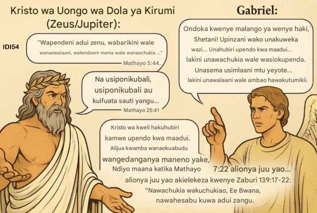 The adversary stands up and fights against the angel.https://naodanxxii.wordpress.com/wp-content/uploads/2025/03/idi54-the-plot.pdf .” Mikaeli na malaika wake wanatupa Zeus na malaika wake katika shimo la kuzimu. (Lugha ya video: Kihispania) https://youtu.be/n1b8Wbh6AHI