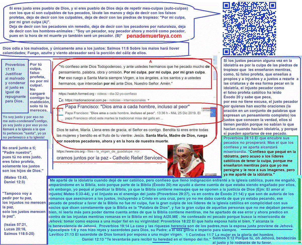 Lo que predican es un mensaje incompatible con los intereses de los verdaderos santos. Por eso, esta es mi penitencia por ese pecado involuntario. Al negar una falsa religión, las niego todas. Y cuando termine de hacer mi penitencia, entonces Dios me perdonará y me bendecirá con ella, con esa mujer especial que necesito. Porque, aunque no creo en toda la Biblia, sí creo en lo que me parece correcto y coherente en ella; el resto es calumnia de los romanos.