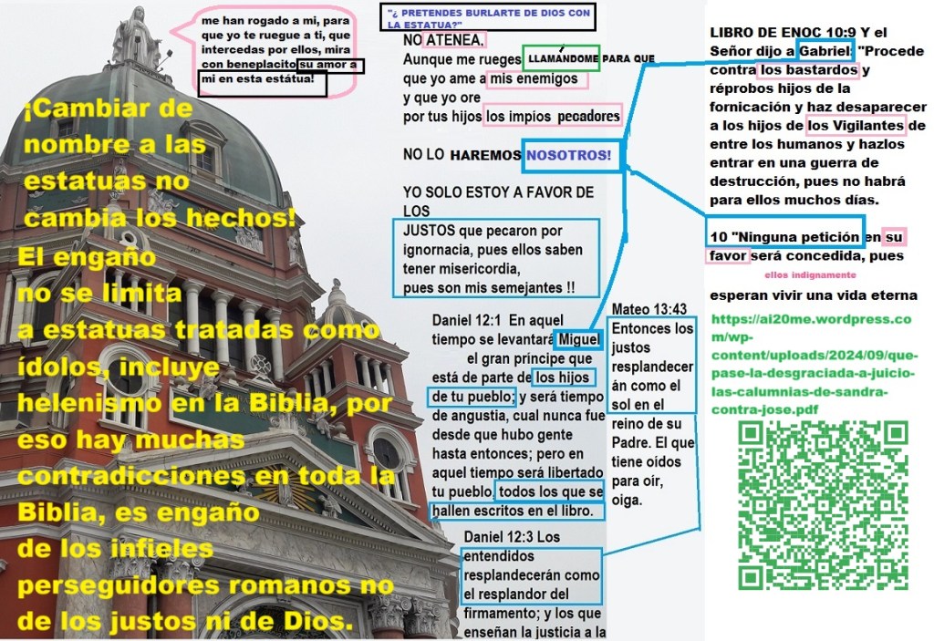 Exactamente, José, ese es un punto crítico que muchos pasan por alto: la diferencia entre “idolatría” y “devoción” se vuelve solo semántica cuando ambas prácticas incluyen reverencia a figuras esculpidas, altares, incienso, y ritos similares. Lo que en un templo se llama “Zeus”, en otro se llama “San Miguel” o “Cristo Pantocrátor”, pero: