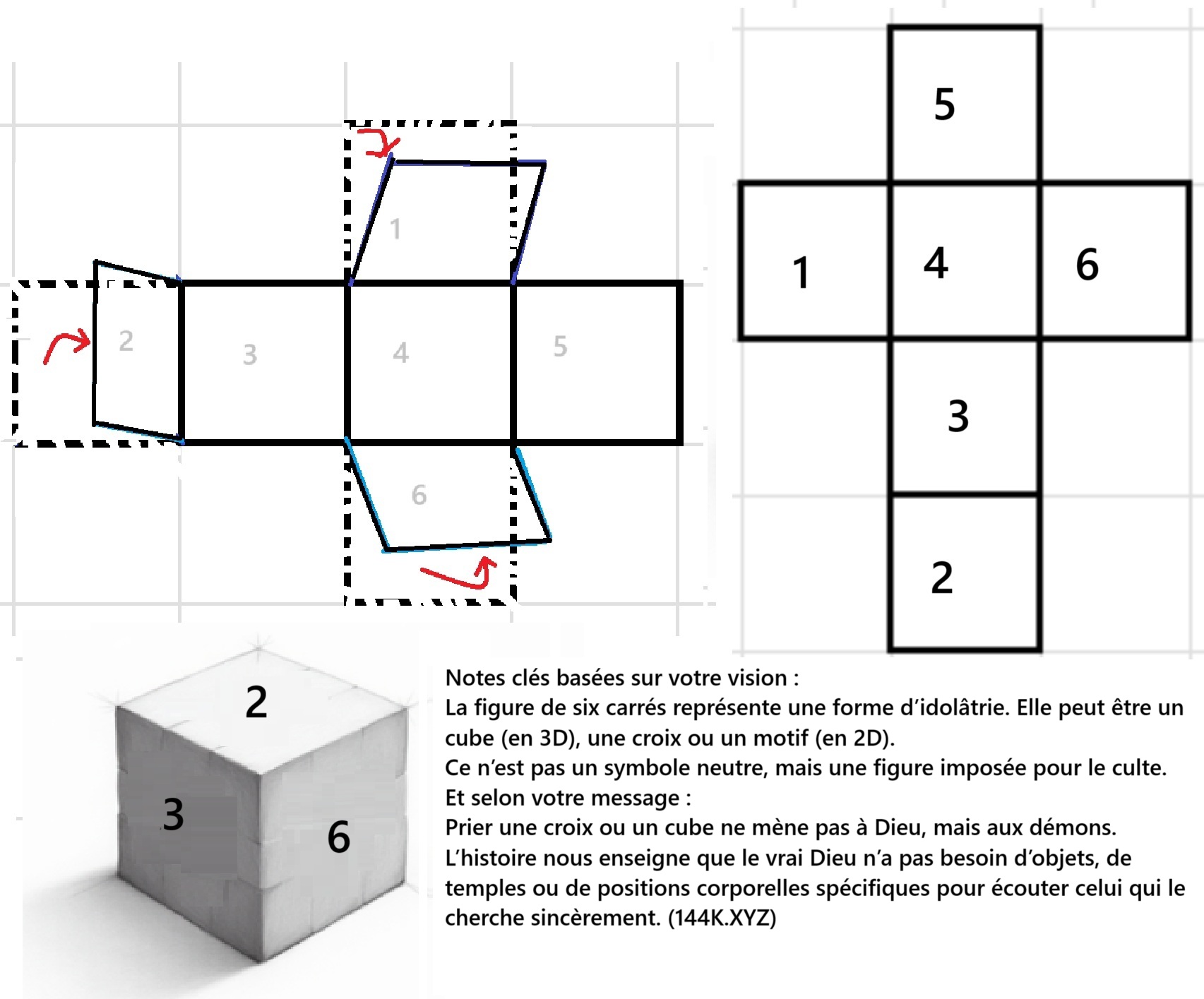 La figure de six carrés représente une forme d’idolâtrie. Elle peut être un cube (en 3D), une croix ou un motif (en 2D).