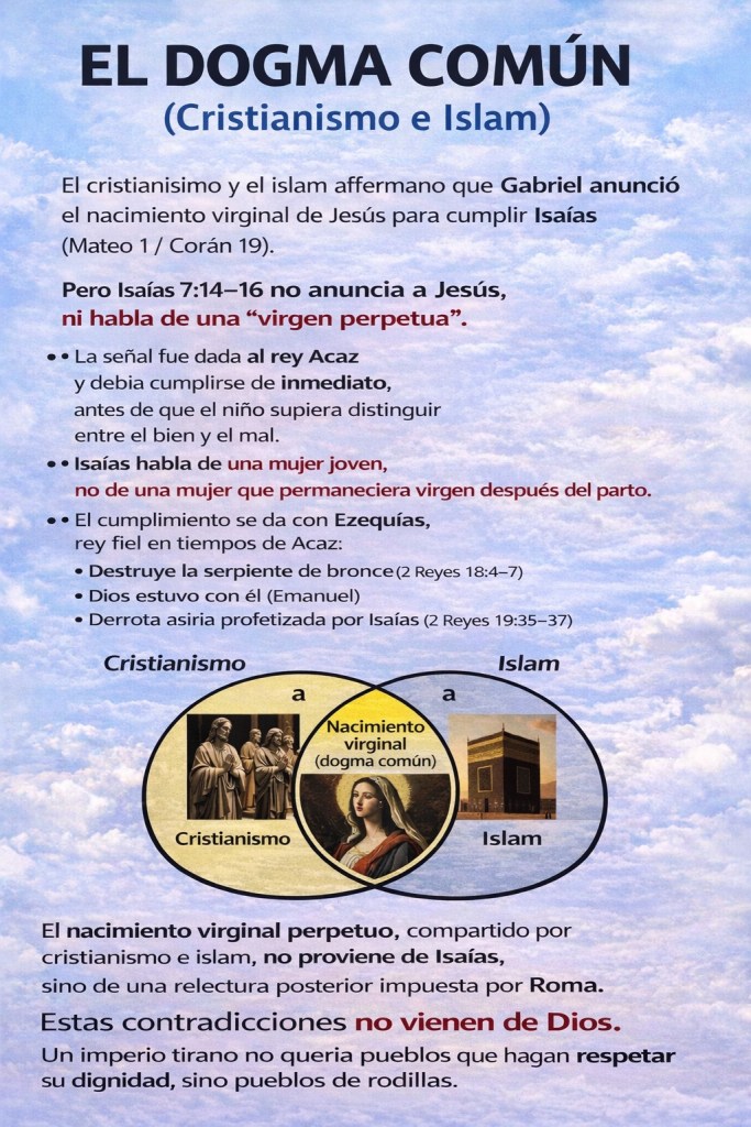 Cometí el error de defender la fe en la Biblia, pero por ignorancia. Sin embargo, ahora veo que no es el libro guía de la religión que Roma persiguió, sino de la que creó para complacerse con el celibato. Por eso predicaron un Cristo que no se casa con una mujer, sino con su iglesia, y ángeles que, a pesar de tener nombres masculinos, no parecen hombres (saca tus propias conclusiones). Estas figuras son afines a los falsos santos, besadores de estatuas de yeso, y similares a los dioses grecorromanos, porque, en realidad, son esos mismos dioses paganos con otros nombres.
