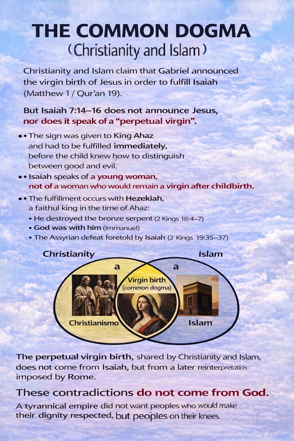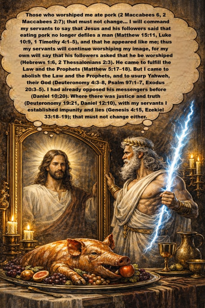 I made the mistake of defending the faith in the Bible, but out of ignorance. However, now I see that it is not the guiding book of the religion that Rome persecuted, but of the one it created to please itself with celibacy. That’s why they preached a Christ who doesn’t marry a woman, but rather His church, and angels who, despite having male names, do not look like men (draw your own conclusions). These figures are akin to the false saints—plaster-statue kissers—and similar to the Greco-Roman gods because, in fact, they are the same pagan gods under different names.