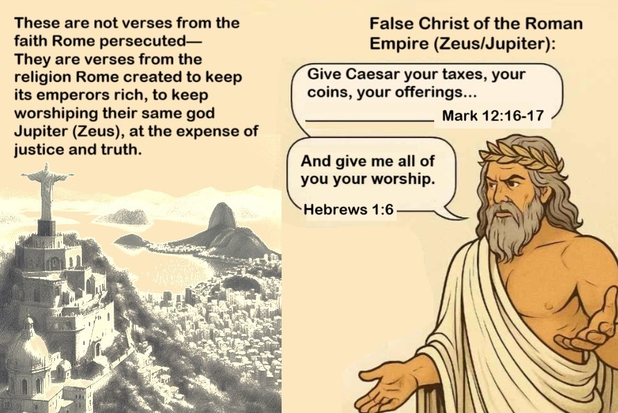 A Submit to the Roman Empire and to its Caesar, for there is no authority except from God; honor my image and direct your prayer to me, because clerical authority requires it (Romans 13:1–2). Do not resist the evil caused by the empire I defend; turn the other cheek (Matthew 5:39).